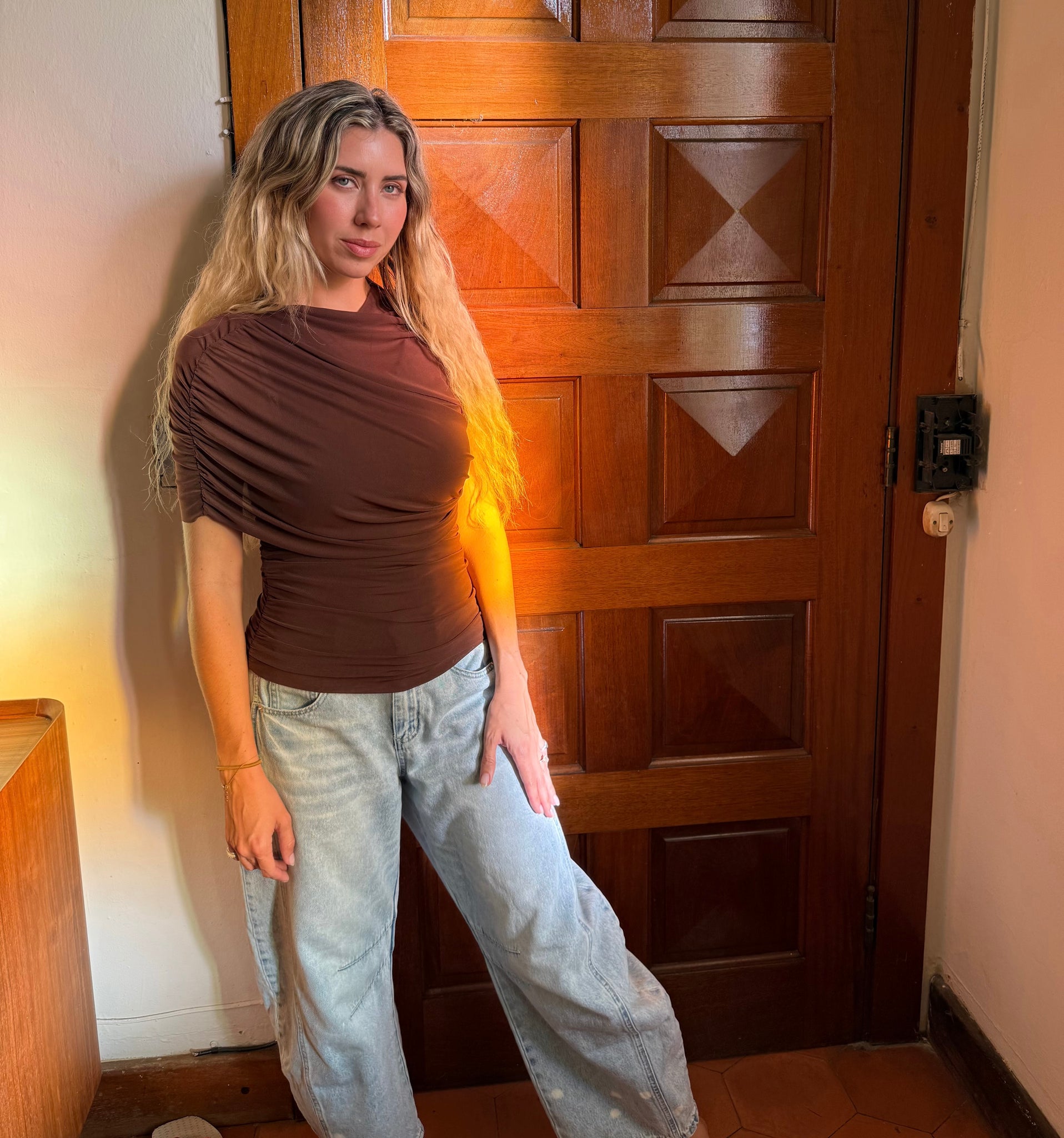 Mesh Mock Neck Slv Top