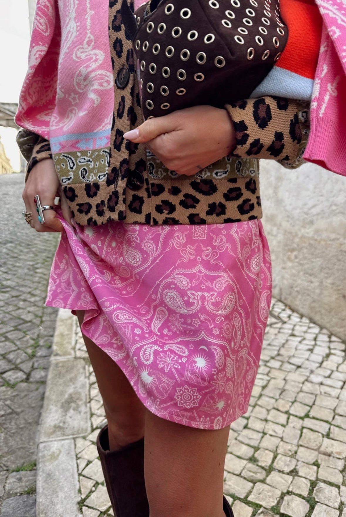 Our classic dorris now as a mini skirt! In our new pink paisley print, a mixture of floral and icoonic NFD motifs. A definite trans-seasonal piece, whether you pair with tights and a boot or layer over swimwear.