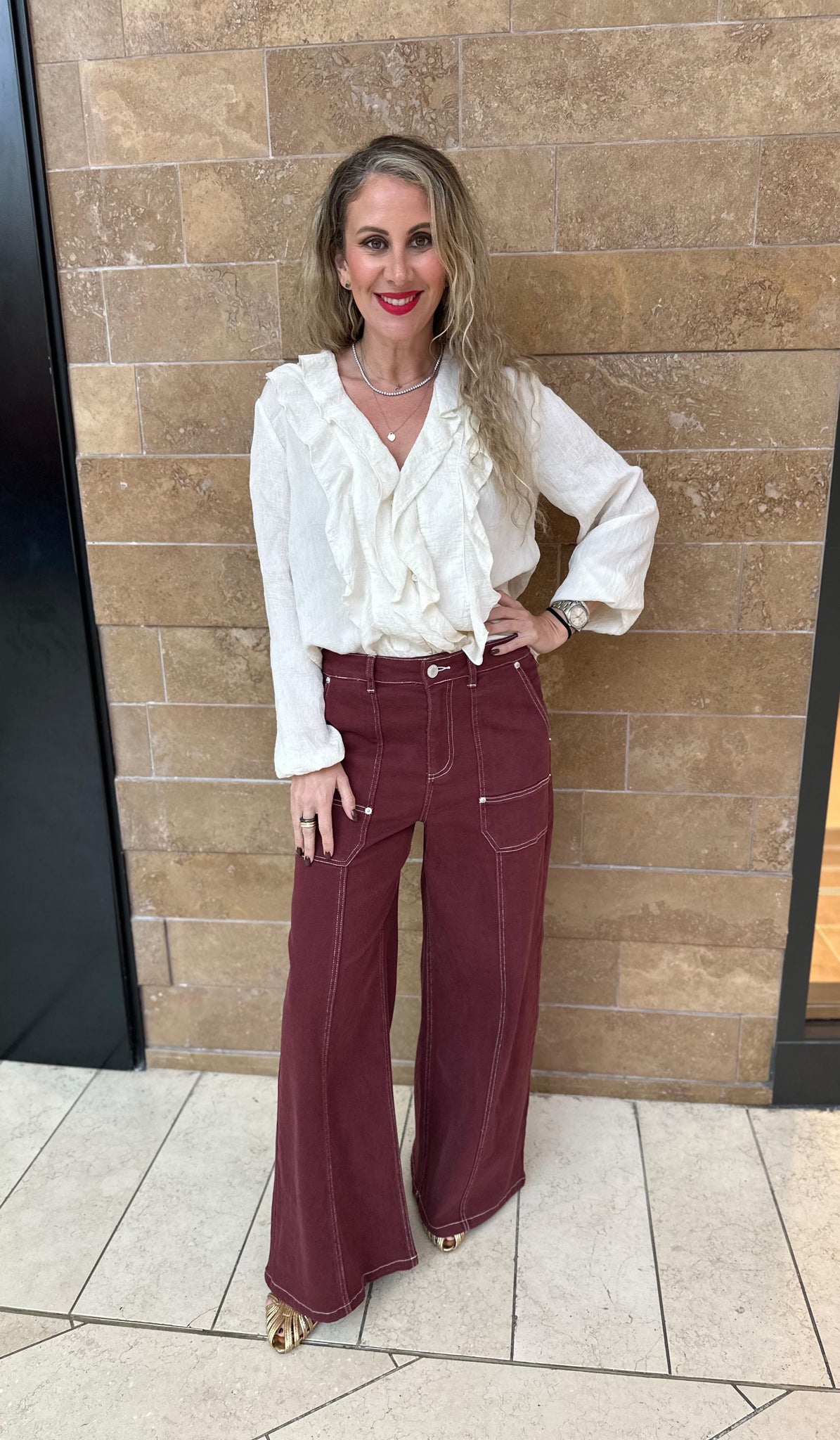 Elevate your everyday wardrobe with our Wide Leg Stitch Pant—a timeless piece that combines comfort with contemporary style. Featuring a flattering wide-leg silhouette and distinctive stitching details, these pants transition seamlessly from office to weekend. The relaxed fit allows for effortless movement while maintaining a polished appearance, making them a versatile staple for any occasion. Perfect for those who refuse to compromise between fashion and comfort.
