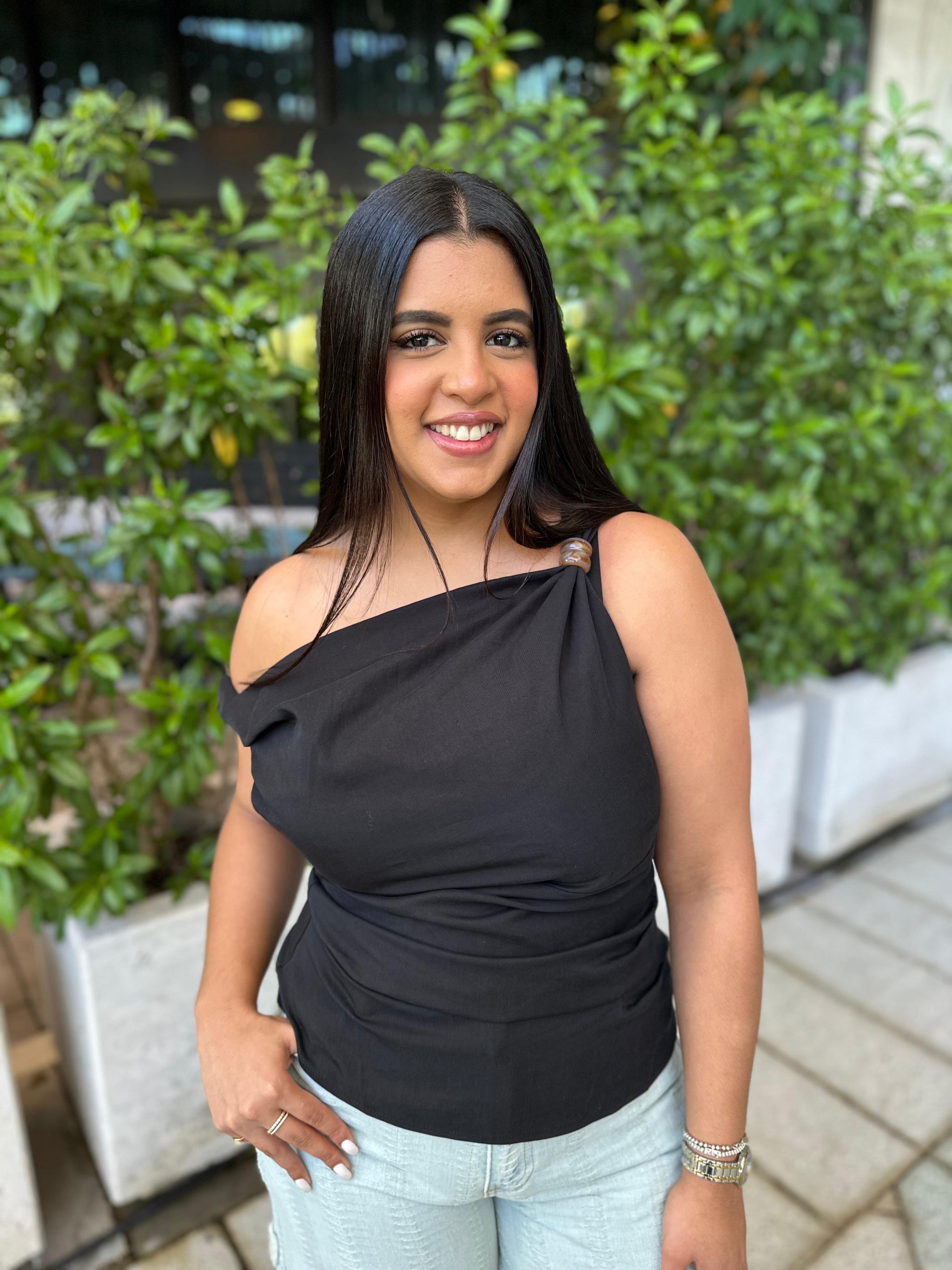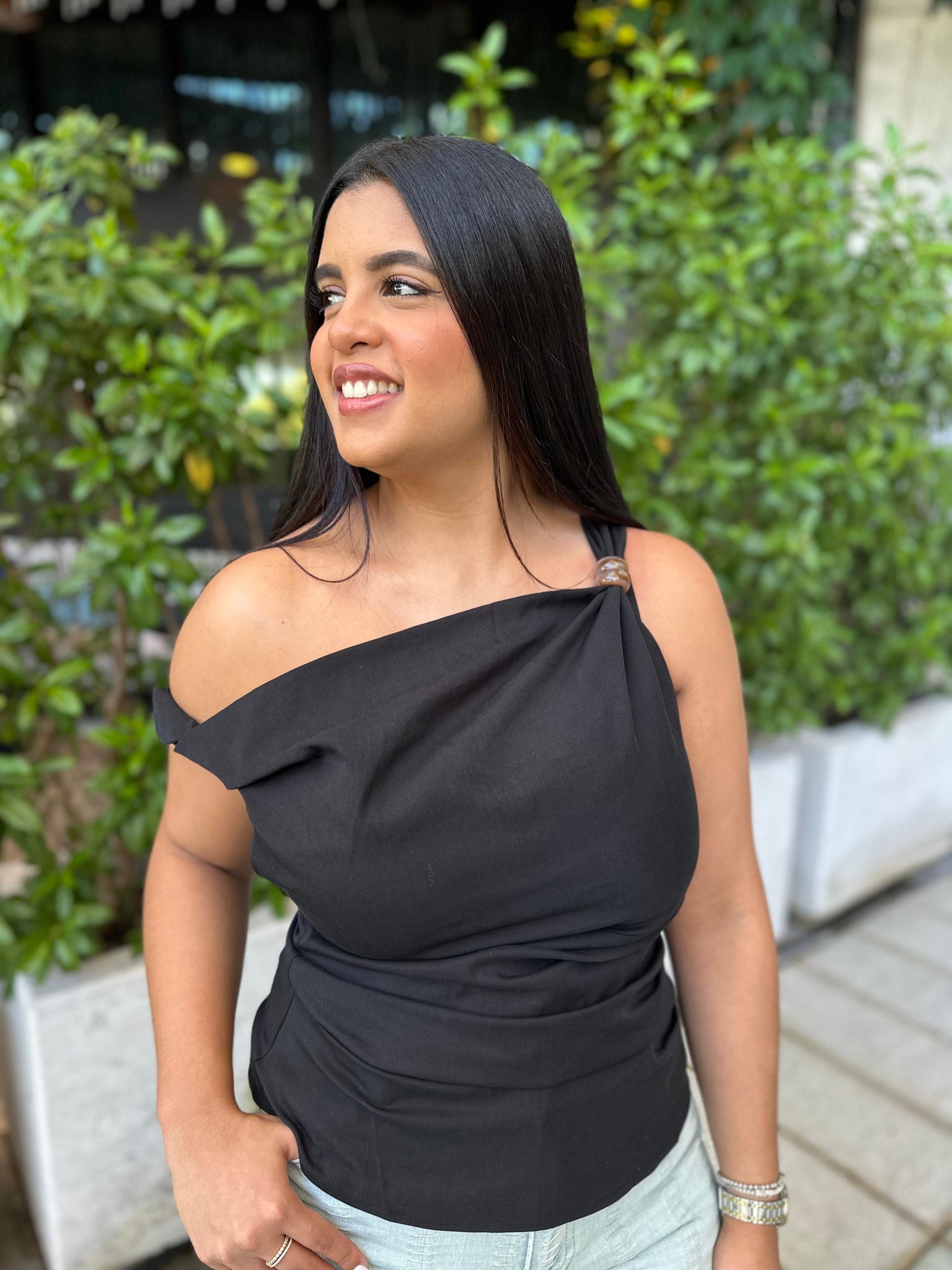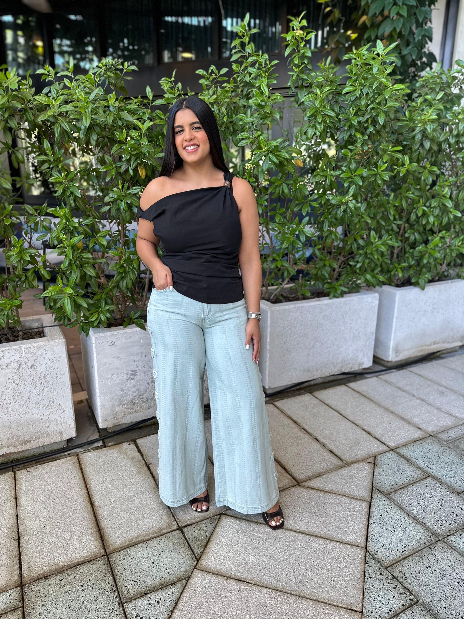"This Wide Twisted Beads Top is expertly designed with twisted beads, adding a unique touch to your outfit. The wide cut provides a comfortable and flattering fit. Perfect for any occasion, this top is sure to elevate your wardrobe."